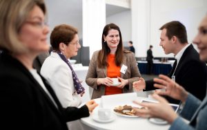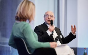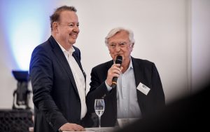 Im Kamingespräch diskutierten Dr. h.c. Thomas Sattelberger (ehem. MdB & Vorstandsmitglied in Dax-Konzernen) und Dr. Christian Ketels unter Moderation von Dr. Sebastian Dettmers und Melina Gmeiner die Rolle von Innovation und Vertrauen in Politik und Wirtschaft. Die junge Generation fordert klare Visionen und Beteiligung.